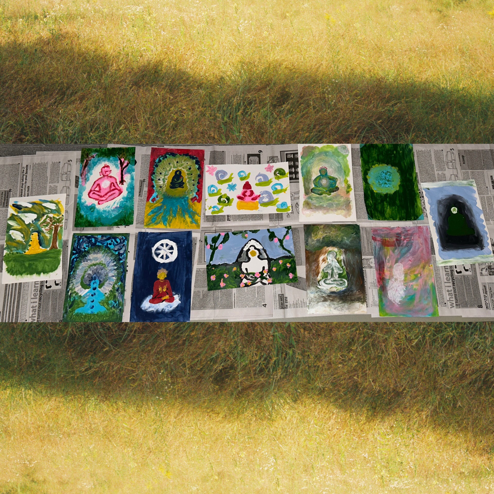 Here we will explore why Buddha (Siddhartha Gautama) among other Buddhas throughout history were depicted in certain postures, snails on his head..etc. Then we will do finger painting to explore the sensation of art with our new found understanding of previous interpretations in Buddhism.